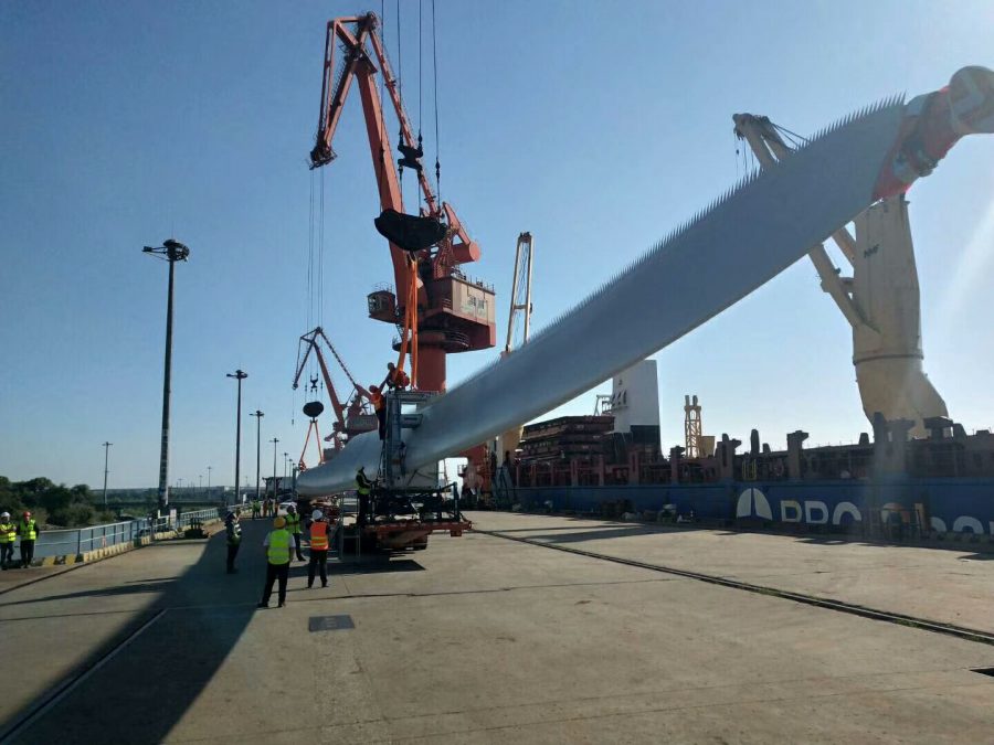 為了順利配合TPI風(fēng)電葉片的出口,揚(yáng)州港區(qū)在今年年初花費(fèi)約1.2億元對港區(qū)3#泊位及配套場地和沿途道路都進(jìn)行了升級改造,還將揚(yáng)子江南路南端的“揚(yáng)州港”巨石名片整體向東進(jìn)行的移動。全部改造完成后,3#泊位和沿途道路將可滿足100米風(fēng)電葉片道路運(yùn)輸及裝船作業(yè)的所需條件。